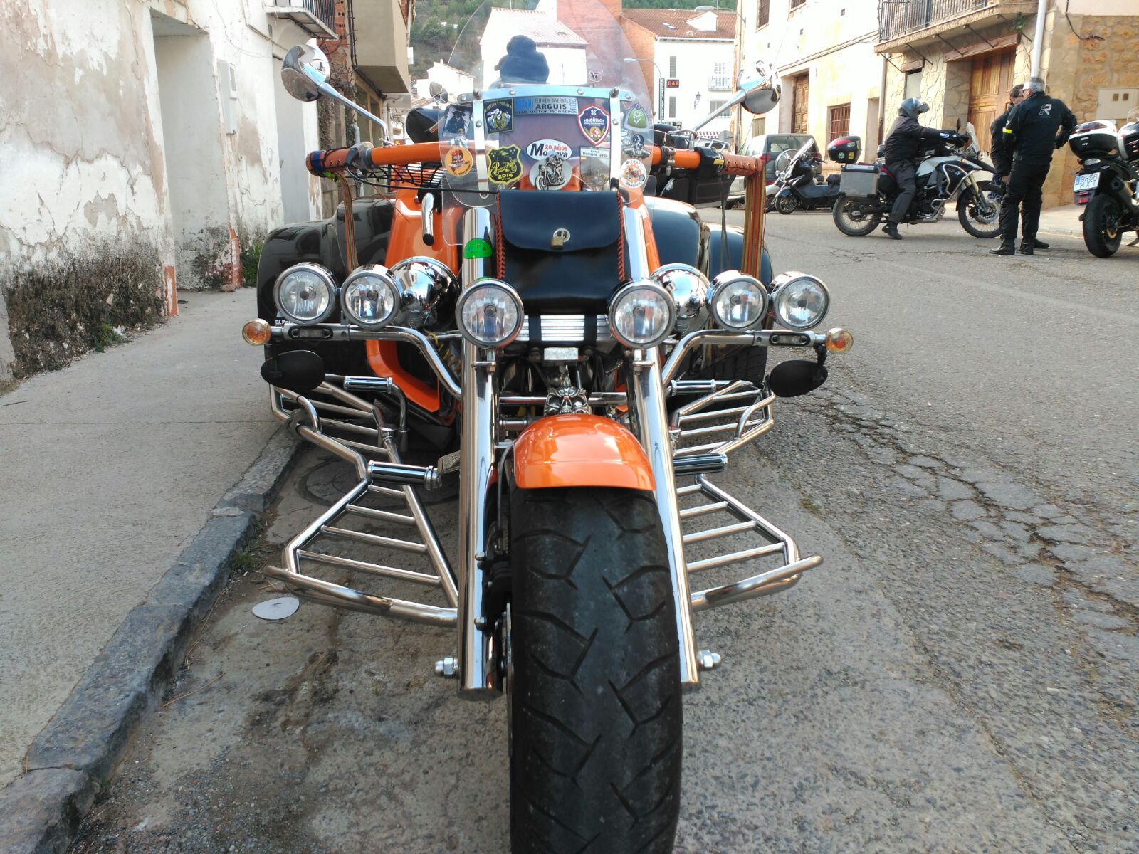 El plan era ir detrás de Ruth, que lleva poco tiempo con la moto limitada, e iba más tranquila..., pero, fueron pasando los kms, y tras ver como iba Pepe, adelanté a Ruth, (sí, pasé de mi regla de oro de no adelantar dentro del grupo), y fui detrás de Pepe, que me mira por los espejos, y me hace gestos muy elocuentes de: pero, ¿que pasa....?. Le digo que tire, que todo va bien..., y vaya sí tiró, espectacular. Fino, fino y por el sitio, como a muy poca gente he visto moverse en moto, y como soy de la opinión que siempre puedo aprender algo de como mejorar mi conducción, a disfrutar como un enano.