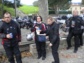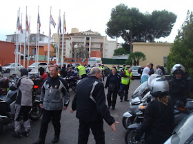 todas las motos de la puerta del hotel estaban en el suelo. Y con un aire infernal, (otra vez...), y con mucho frío..., hasta el punto, que nos toco volver a subir a la habitación, (Oliver y a mi, otra vez..., ya que el amigo, vino conmigo a todas partes...), para coger la "braga" del cuello, y la chaqueta de la moto.